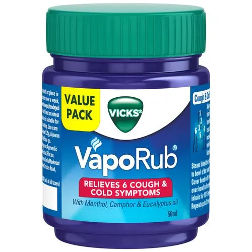 Vicks Vapo Rub With Menthol, Camphor & Eucalyptus Oil - Relieves Cold & Cough, Clears Blocked Nose, 50 ml Bottle
