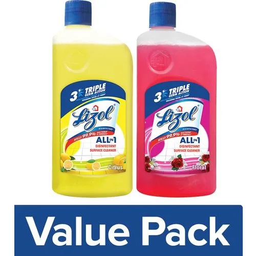 Combo Pack Lizol Disinfectant Surface & Floor Cleaner Liquid - Combo, Citrus & Floral Each 975 ml, Combo (Pack of 2)