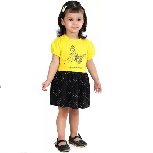 Midi/Knee Length Casual Dress (Yellow, Half Sleeve)