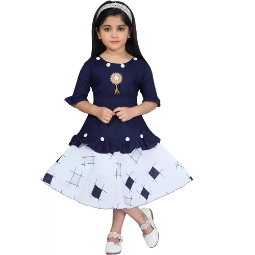 Girls Below Knee Festive/Wedding Dress (Blue, 3/4 Sleeve)
