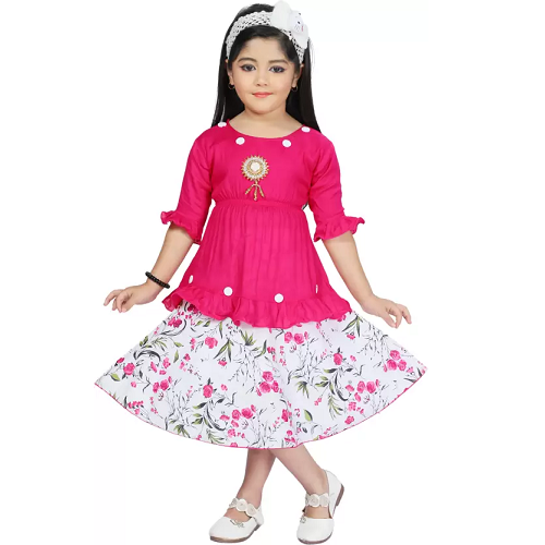 Girls Below Knee Festive/Wedding Dress (Pink, 3/4 Sleeve)