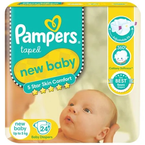 Pampers New Baby Taped Diapers - Soft, 12 Hours Absorption, 5 Star Skin Comfort, Up To 5 Kg, 24 pcs Pouch
