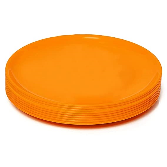 Kuber Industries Round Plastic Microwave/Dishwasher Safe Dinner Plates Set for Families, Parties, Daily Use, Set of 9 (Yellow)