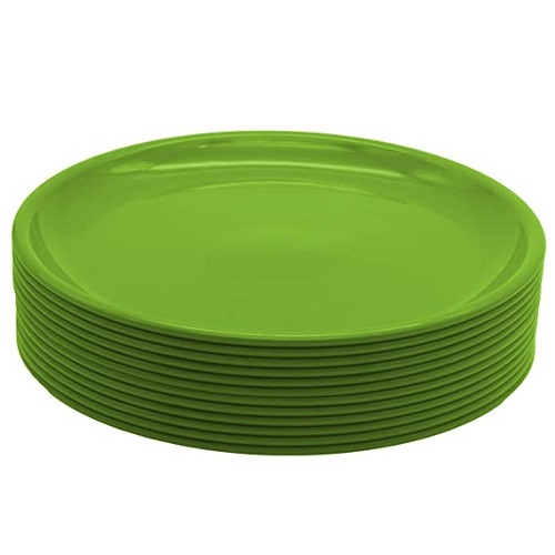 Jaycee Pack of 12 Plastic Microwave Safe & Unbreakable Round Full Dinner Plates for Dining Table,Kitchen Dinner Set (Green Microwave Safe)